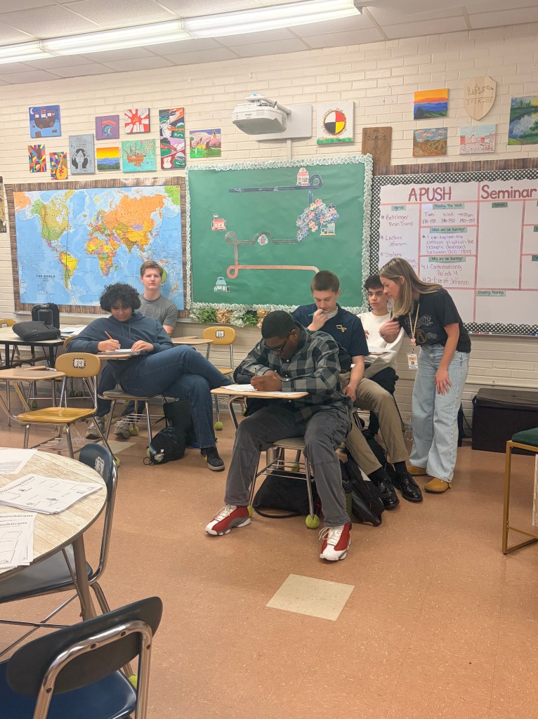 Along with AP U.S History, Mrs. Holden teaches AP Seminar which is a year-round combo class with AP U.S History although you can talk U.S History by itself. Seminar is required to go along with it, Seminar is part of the AP Capstone program and is very work-heavy but Mrs. Holden is great at breaking the work down and making it more digestible and approachable.